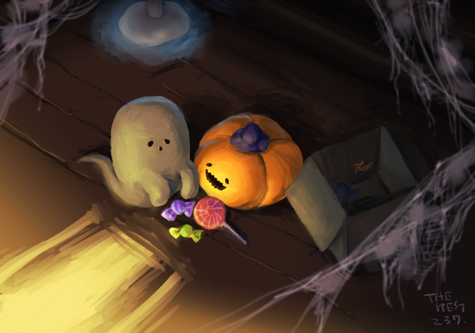 #HalloweenCountdown The rest 237! ハロウィンでもらったお菓子がそろそろ少なくなってきたのでヴァルプルギスの夜に向けて頑張ろうと思ってるオバケとカボチャ