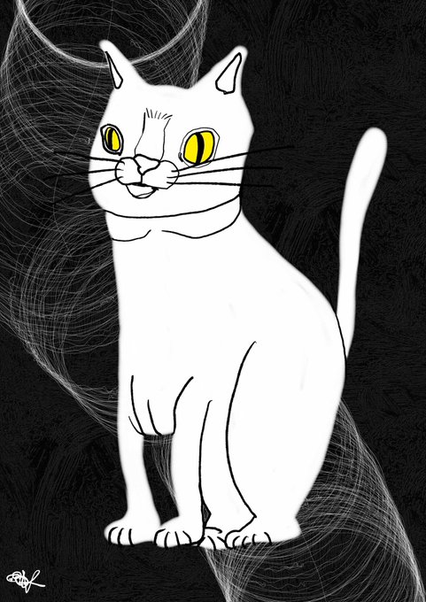 やみの中のヌルッとした猫の、鳴き声を聴いた。 #イラスト完成