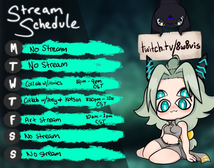 Also here is stream schedule for this week, I’ll be only doing 3 days of streaming, I’m still very tired from things that hav happened and might push some things back alil (lik the raffle) so I can just chill a bit. Thank u everyone, y’all r amazing remember that💚✨