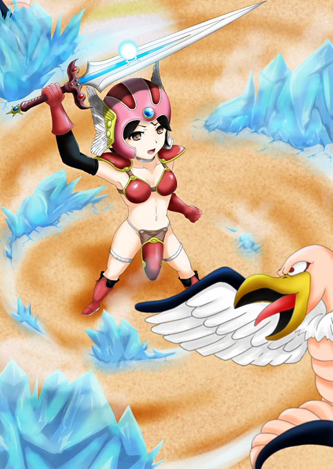 #日塔奈美 #ドラクエ3 #キメラ #さよなら絶望先生 #吹雪の剣 @yukaji4 さんにSKIMAで描いて貰った、吹雪の剣で キメラ蹴散らす奈美平カッコ良い