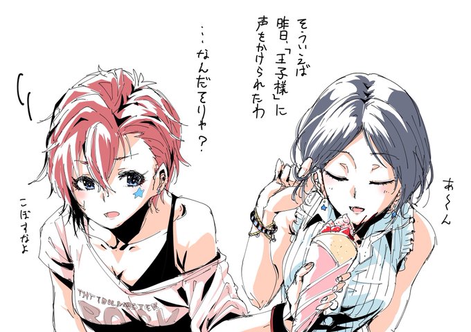 後日... 奏「美味しそうね、一口いいかしら?」 ジュリア「しゃぁねぇな、ほらよ」 通りすがったファン 「あ"ぁ"ぁッッ‼︎‼︎」(絶命) #第8回シンデレラガール総選挙 #奏の魅力をかなでよう #速水奏
