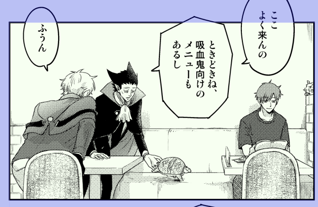 読切ドラロナ 大家ディンが結局人間なのか吸血鬼なのか分からないが(耳丸いよねえ)今回は吸血鬼設定で描いた