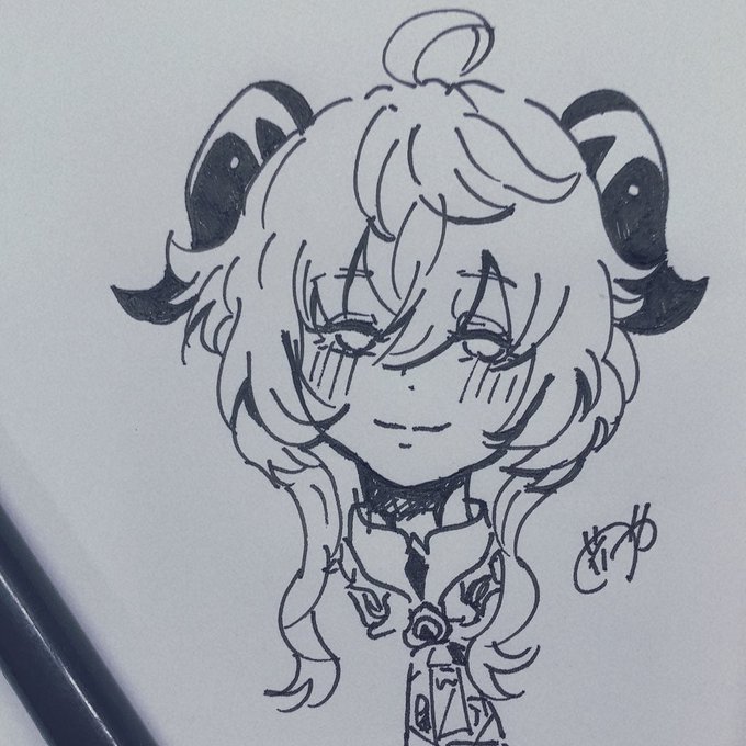 最近描けてないので1発描きと厚塗り前の甘雨ちゃん見てほしい……