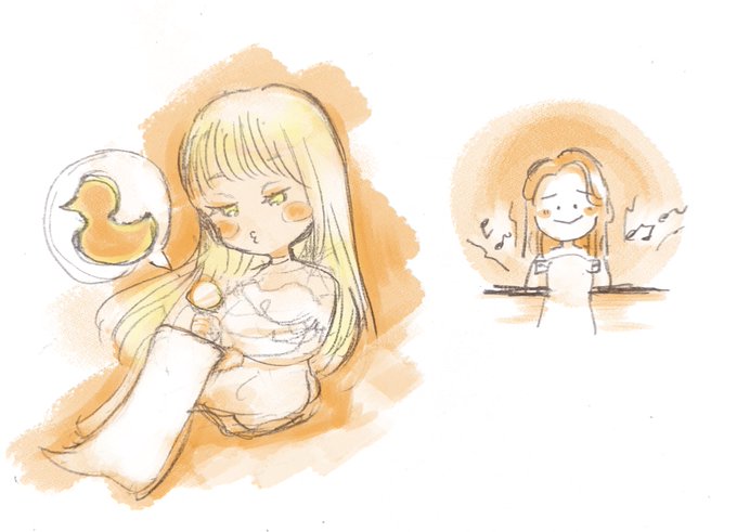 今日描くつもりだった落書きをざっくり色塗りした🐥🦋🐰(お昼の公式フォト更新で作業すっ飛びました)