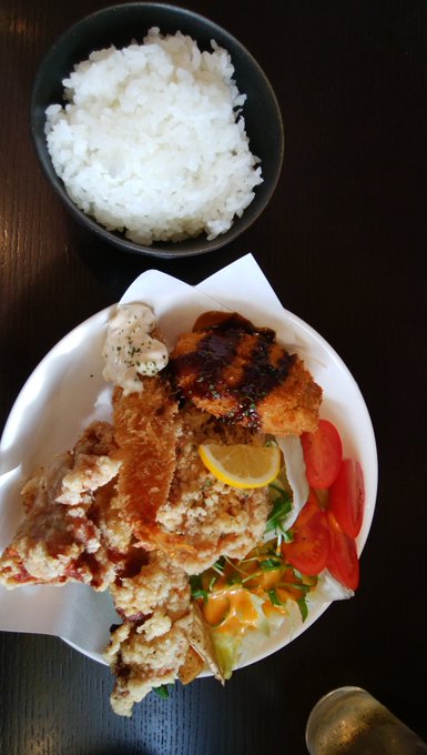 今日はお肉が売り切れた焼肉218さん(@218z11)へ行ってきました。 濃いめの味付け唐揚げはとても美味しく、コロッケも美味しいのでコロッケ丼で食べてみたいなと思ったけど、想像したら猫まんまだからやめよう。 #cafe218