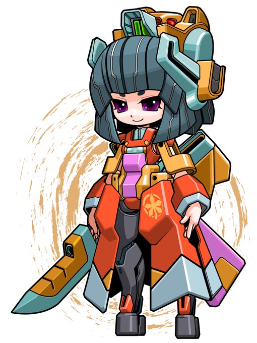 ①【コンテスト参加】【応募条件に同意します】#デスクトップアーミー ②名前:モミジ 干支:亥 特徴:前面装甲強化と腰部ブースターによる加速による突進攻撃が得意