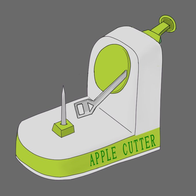 そしてこれは 『「ずぼら先輩10話で登場したけどその後1度も使われることがなかった」というネタで上の絵の隅に張り付けようと思って描いたけど、結局使わなかったリンゴの皮むき器』!!