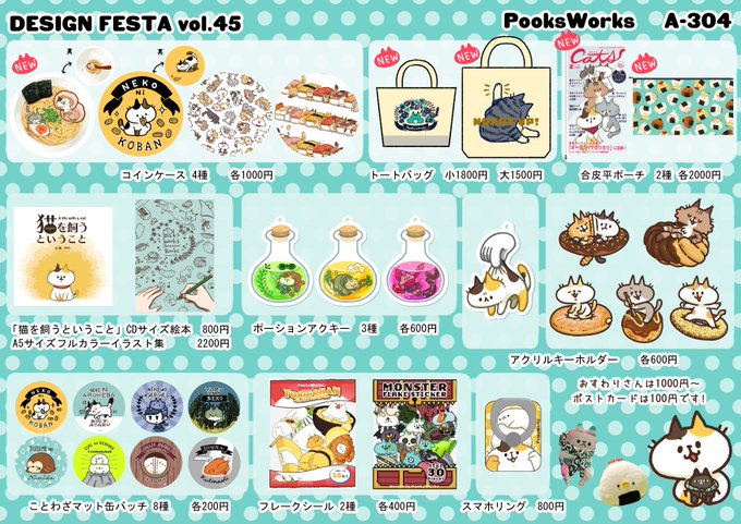. @designfesta A-304 日曜のみ「PooksWorks」おすわりさんというぬいぐるみや猫のイラストグッズを販売します! #デザフェス
