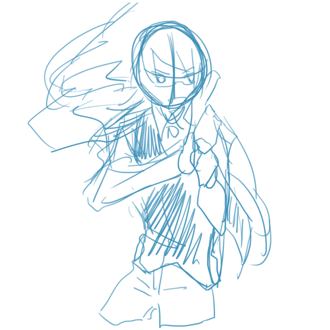 ポーズのあたりは描かないことの方が多い(いつもラフデザインの線を綺麗にして本番の線画にしている)(へたくそなので…)唯一残ってるのが津久井の立ち絵のここら辺…二つ目に至ってはもう全然違うな