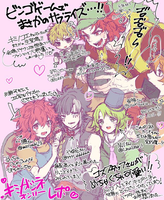 #kmgsnオンリー お疲れ様でした〜!!レポというよりもはや私の描きたいことだけわ〜っとまとめた絵に…! 初オンリーめちゃくちゃ楽しかったです!また参加するぞ〜!! ※あまりにやかましかったので2枚目は文字なし