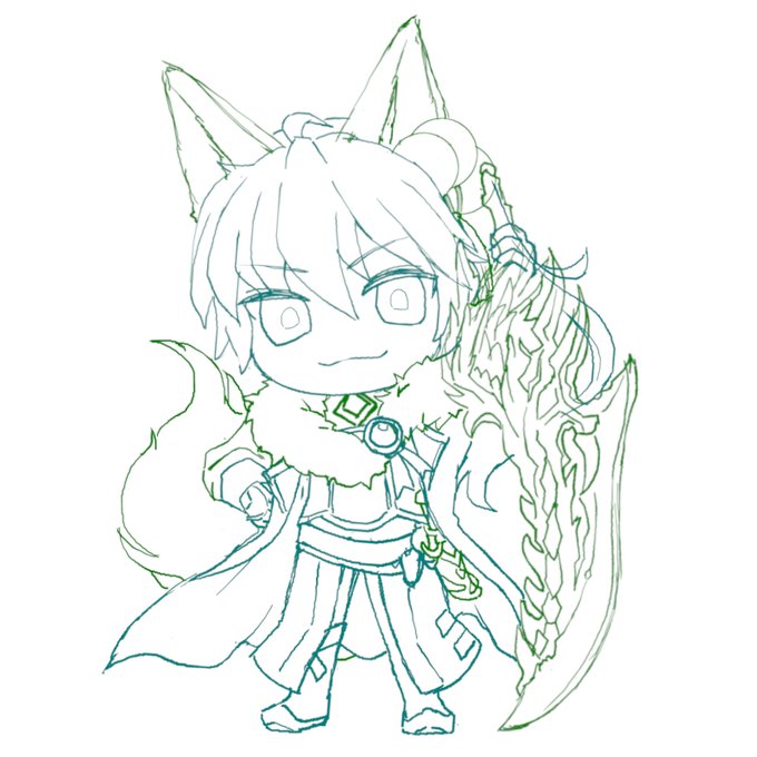 狐耳、蘇芳上や尻尾が初描きで時間をかけて描いてました。
