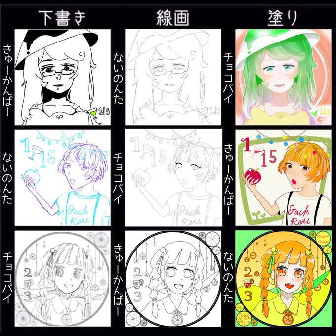 完成!!参加できて嬉しかった💕 めっちゃ楽しかったし二人とも絵が綺麗すぎて眩しい尊い👼👼 ないのんた【 @nainon_ta23_shu 】 チョコパイ【 @chocopai_puku_ 】 #3人で下書き線画塗りを交換して絵を完成させる