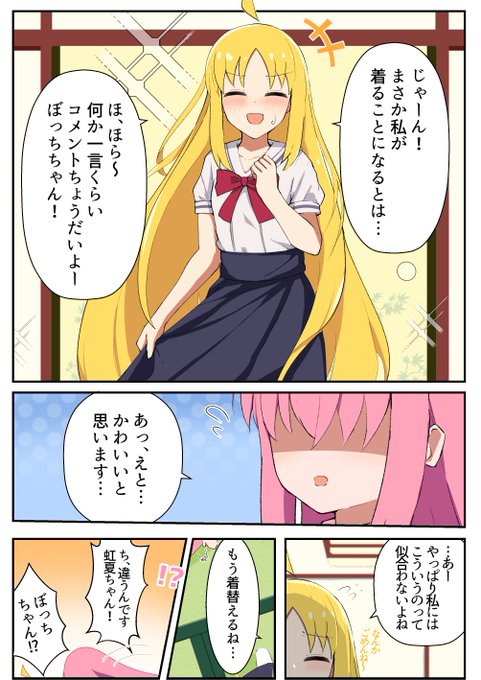 ぼっちちゃんの私服を着る虹夏ちゃんの漫画