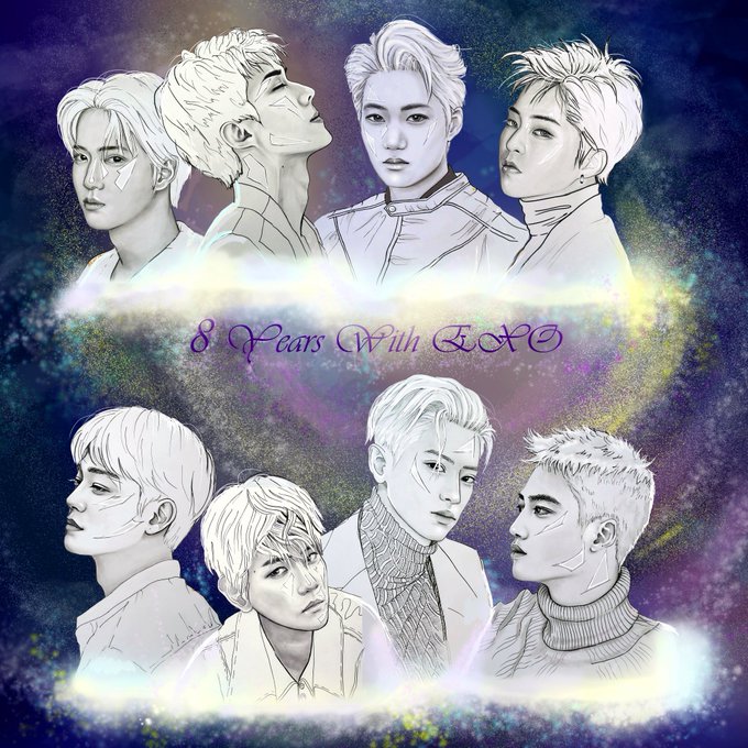 @B_hundred_Hyun Let's be in love! You are my personal universe. I love you guys very much! #우리의_청춘_시대는_엑소라고_부른다 #8YearswithEXO #exo #사랑하자_엑소_8주년_축하해 #exofanart #EXOnME_OursMemories8years