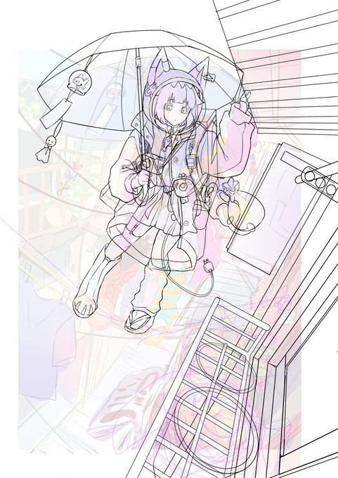 もう後ろの背景は線画じゃなくてええやろ…