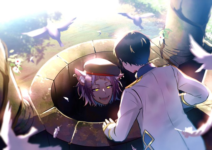「ありゃあ、寝ちまっとるにゃあ」 ネコとチェーニャくんかわいいね #ツイステファンアート #twstファンアート