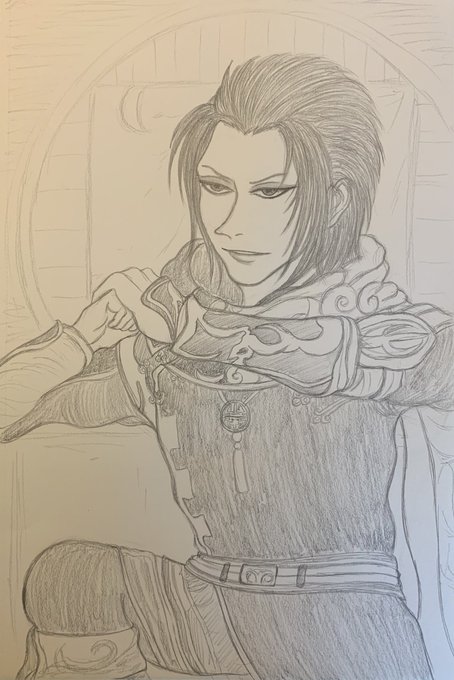 色の塗り方を変えて試し描きしたらくがき(いつもと同じ気が💧)。途中、停電したけど😅一応、仙界verの賈充です。