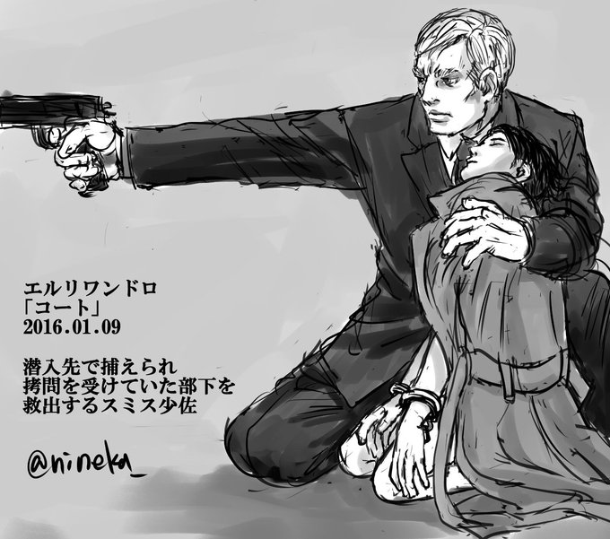 #エルリ版深夜の真剣お絵描き60分一本勝負 「コート」1/9 6:00-7:00 コートといえば裸+コートしか浮かびませんでした。 今回は上司部下のスパイエルリ。