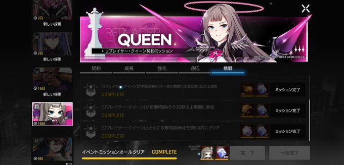 リプレイサークイーン契約ミッションを全てクリア出来たのでぷちユニット貰えました。
