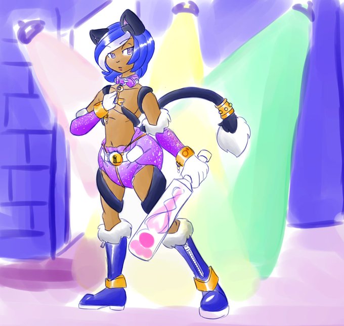 And here we go! First of the pairs I'll be scribbling, Cedar the Fairy-Type trainer and his catertaker, Titania the Mamagarde. Free of the drudgery of the ratatta race, Cedar and his team challenge trainers and fashionistas alike!
