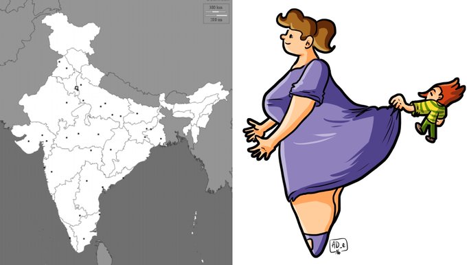 OMG la carte de l'Inde ressemble à une femme qui se fait tirer la jupe par le virus de "Il était une fois la vie" :)