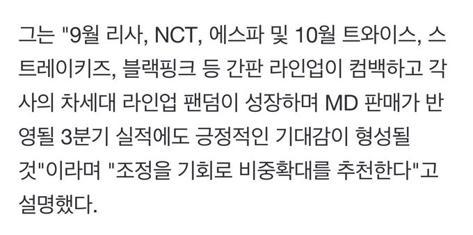 210907 นักวิเคราะห์ของบริษัทการเงิน Mirae Asset ได้พูดถึงการคัมแบคของไอดอลในเดือนกันยายนและตุลาคมค่ะ (ไม่ใช่ Official)
