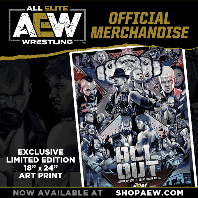 Available now from https://t.co/3SpzMcf6Ac and @PWTees - #LimitedEdition 18"x24" #AEWAllOutPoster