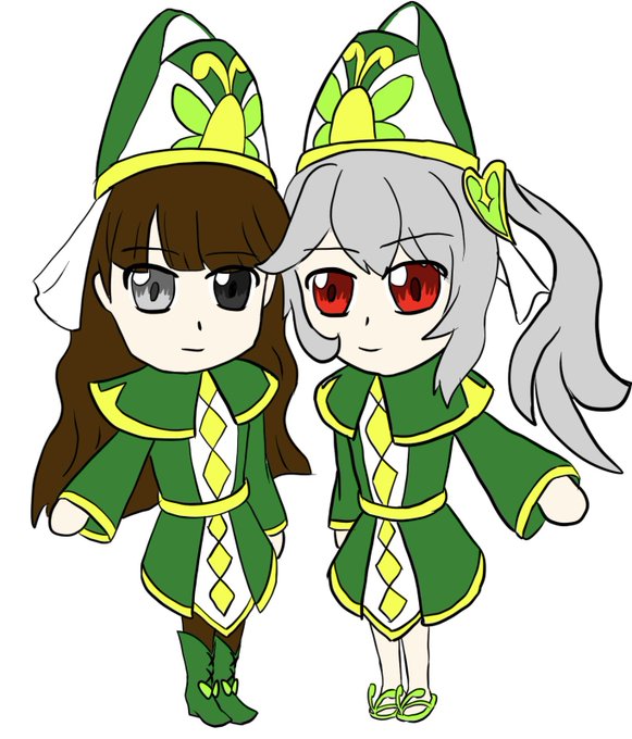 @78hAVme2oQpomdT 図鑑用、ということは沢山要るし、見やすさも兼ねてミニキャラ形式でいいのかな?とりあえず二人描いてみました。