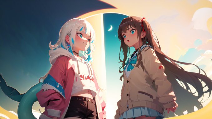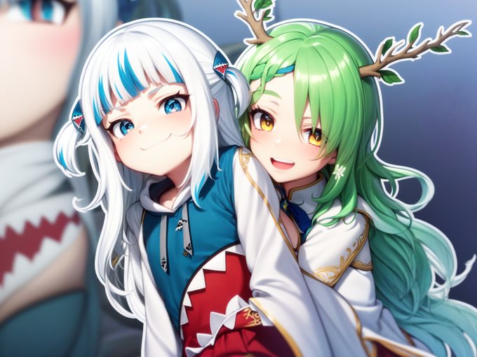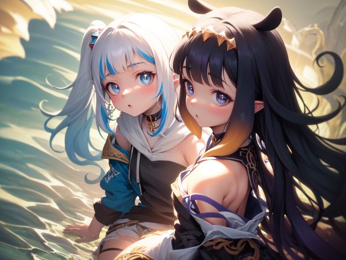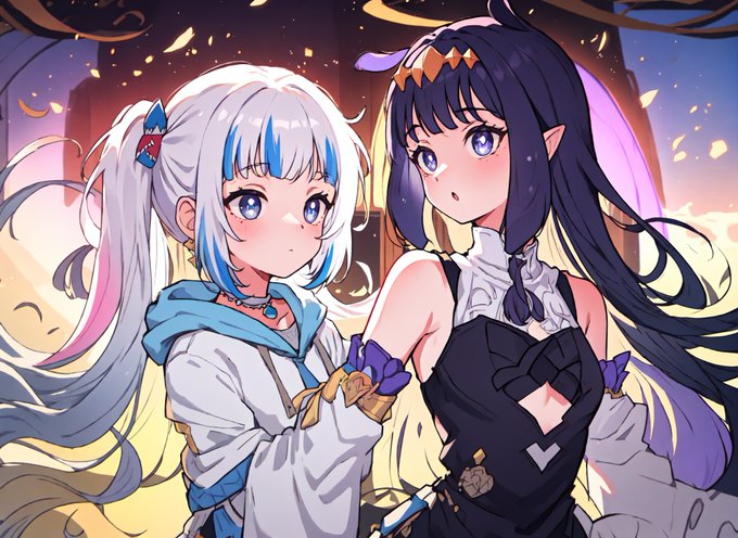 Testing out another different style. I'm unsure if I like it or not. A mix of pictures of Gura and Ina.