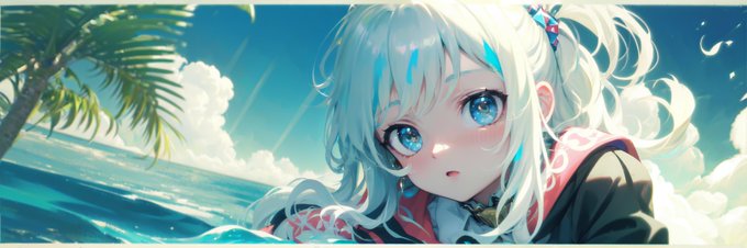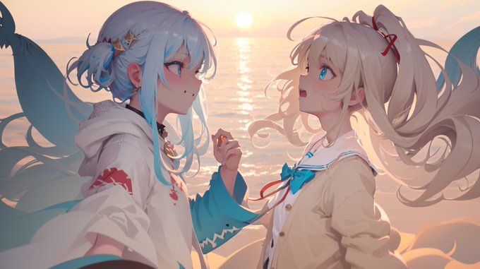 Made some banner style pictures. First is Gura at the beach by herself. The other two is Gura with Ina and Neuro-Sama.