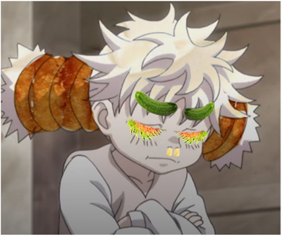 if you're wondering what I've been working on all this time here you go. onion-ring-mayo-pickle-cheese-rambutan-fruit-komugi. please say something nice to her :)))