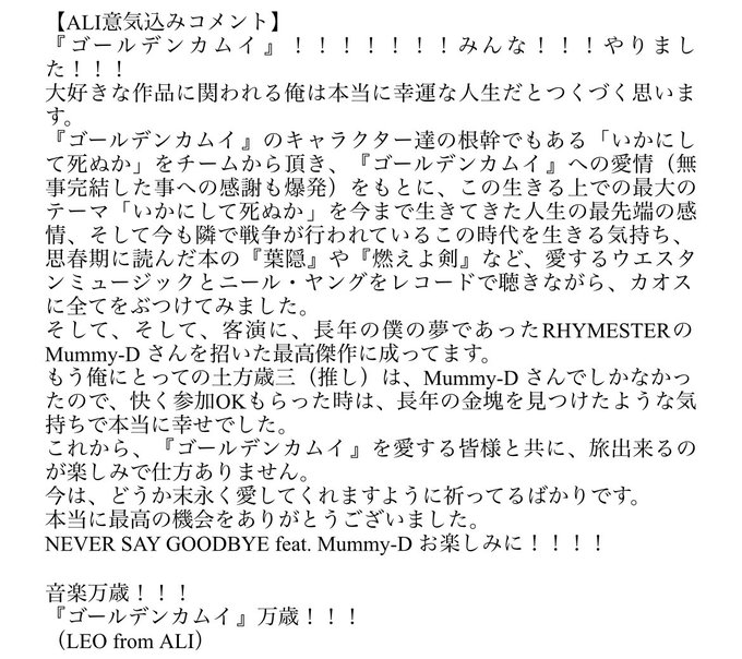 ALI「NEVER SAY GOODBYE feat Mummy-D(RHYMESTER)」