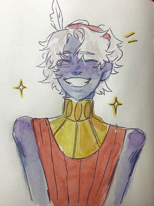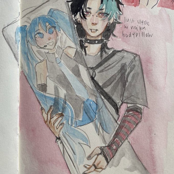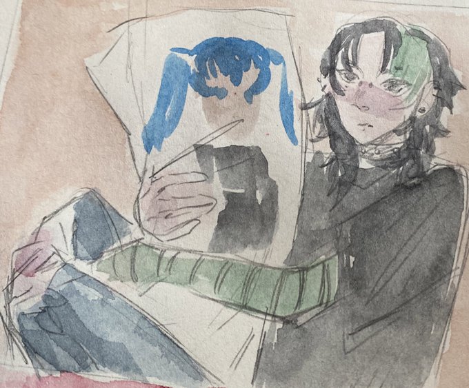 @ShizuBleeeeen hello i got tagged here~ im a traditional artist who mainly does watercolor sketches of hypnos from hades haha :] i also occasionally draw some hypnos x anyone pron :]