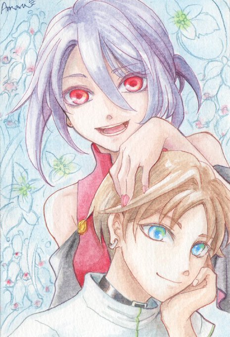 主人公(長女)の親友とその上司 メインの登場人物はこの6人 #創作 #イラスト #透明水彩 #アナログ