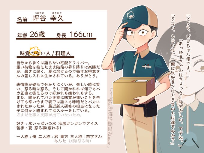 こちらの素敵な企画様( @weeat_tl )に2人目参加させていただきます。 笑顔を届ける表情筋の硬い宅配ドライバー。 宜しくお願い致します🐤📦 #食とも_CS #食とも_味覚のない人