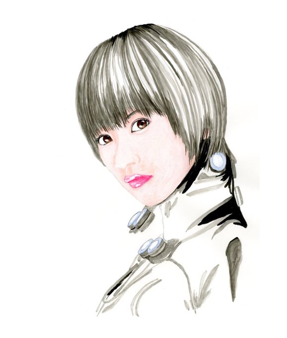 アクリルガッシュ絵具のランプブラックで塗ってしまいました😅 #アクリル画 #似顔絵 #人物画 #アナログイラスト #acrylicpainting #モデル #女優 #北川景子