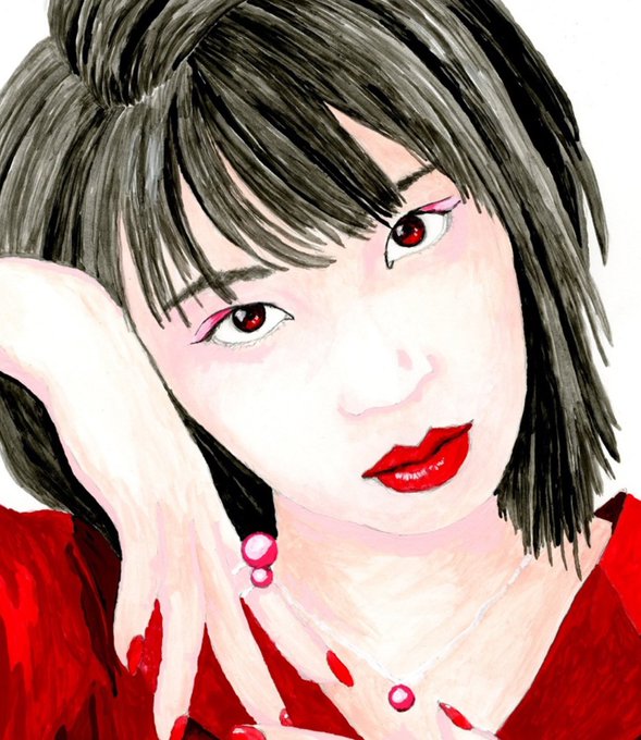 赤系の絵具を主体に描いてます。まだ、アクセの色は思案中です😅 #人物画 #アクリル画 #似顔絵 #acrylicpainting #アナログイラスト #広瀬すず #女優