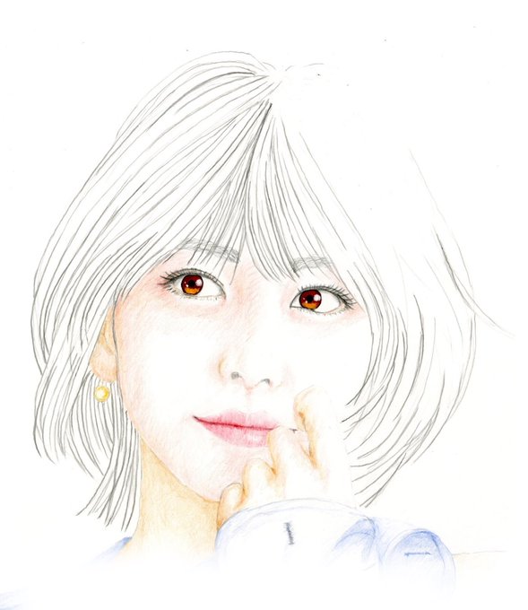 色鉛筆を主体に淡い感じのタッチでケント紙に描きました😊瞳の色とヘアースタイルは少しアレンジしています😅 #アクリル画 #色鉛筆画 #似顔絵 #鉛筆画 #人物画 #池田七帆 #アナログイラスト #透明感