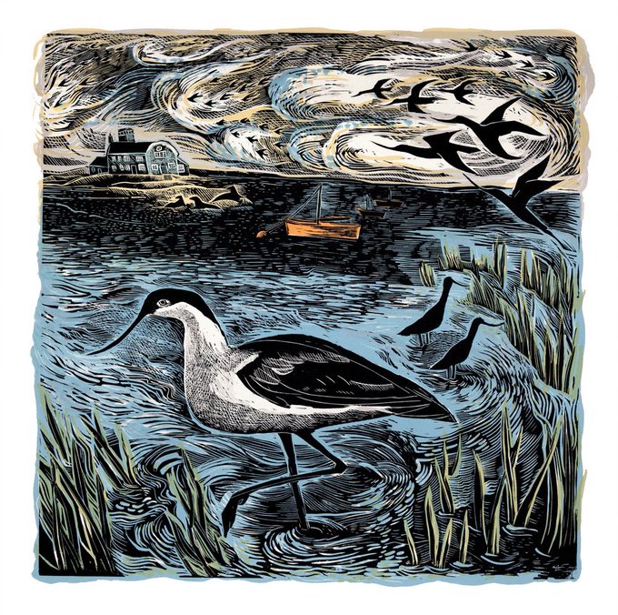 Avocets at Blakeney #Norfolk #printmaking @PenfoldPress also on my website