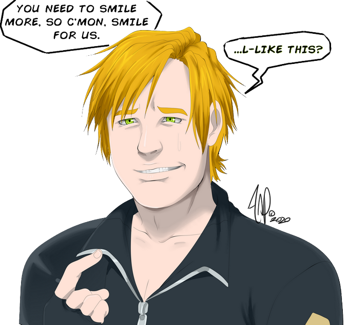 Ethan trying to nervously smile. :v