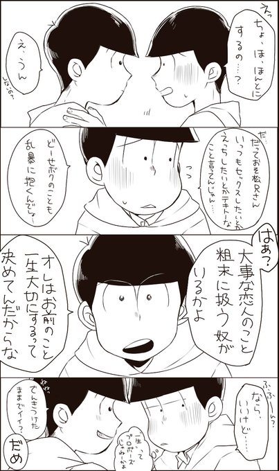 いつもヘラヘラしてるけど、そーいうところだけはまじめで男らしいおそ松とそれに弱いチョロ松 おそチョロ