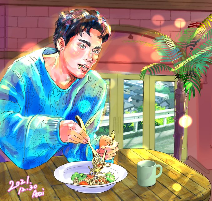 キメキメだけど、タバコではなく、 ココアシガレット(お菓子)というイメージ。 #PerthNakhun #FanArtNakhun