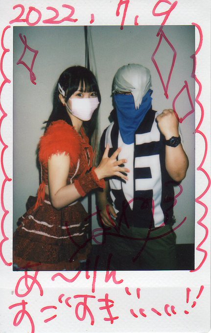 7/23 GOTANDA G4 はじめましてのNaNiRoRiさん 大阪中心で活動とのことで、関東は月一くらいだとか。 はなちゃん笑顔がかわいかったので、初見チェキだけじゃなく買い増ししちゃった。 #小泉はな #NaNiRoRi #ヒロアカ #オールマイト #トゥルーフォーム #障子目蔵