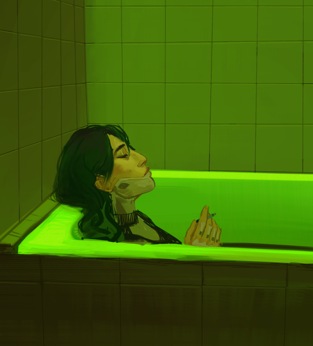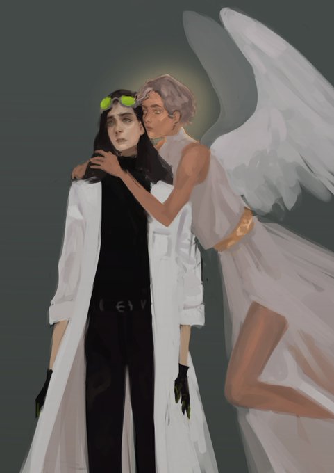 riley my beloved...last name palmero, short king, he's a weirdo loner living in a van in the desert with his robot husband, talented mechanic, made his own arm after losing it in an explosion, rides a motorcycle, hates people, had bad joints. resident grumpy virgo. tech guy. gay
