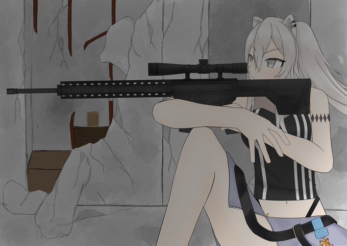 現代系のDMRとかってししろんに似合うよねって言うのと、 この構えすごい好きって言う、私の好きが詰まったイラスト #ししらーと