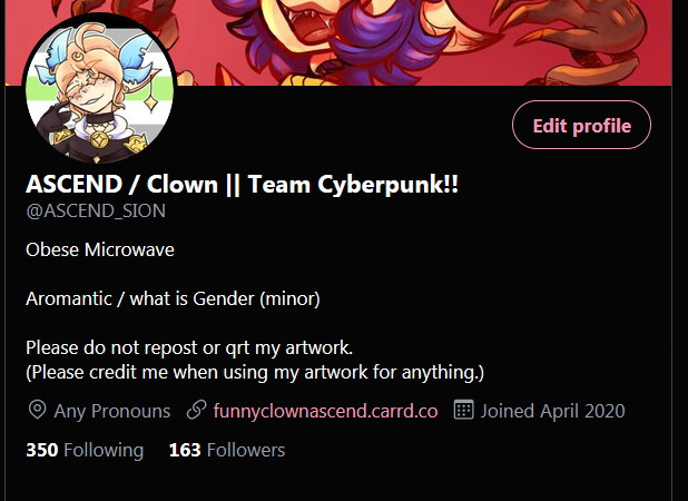 @pitypartypoison Yoooo I'm ASCEND and I am a Multi-fandom artist :] My current follower goal is 200!! :o