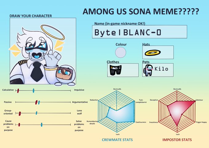 I've done some among us sona stuff that i've forgot to post so have a bean ref and a meme