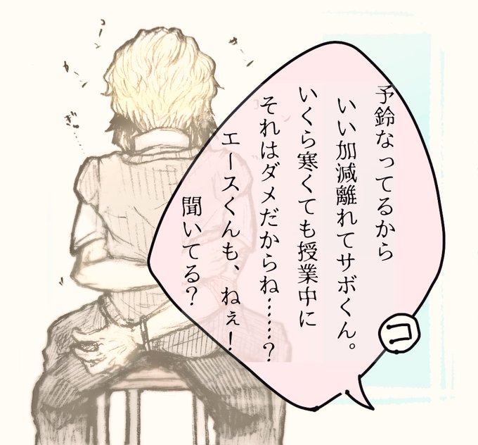 どの世界線の学パロか分からないけど授業の合間の短い休み時間にくっついて暖をとる🔥🎩はありますのらくがき~ 🐨ちゃんか🎭くんを困らせてそう…(幻覚)