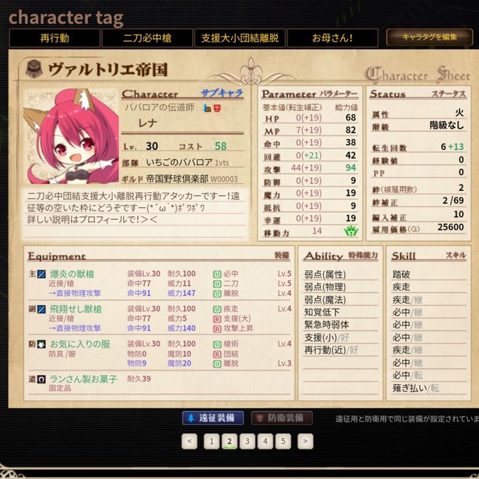 に支援大小再行動つけた支援アタッカーになったキャラレナデスー(* ´ ▽ ` *)ポワポワ