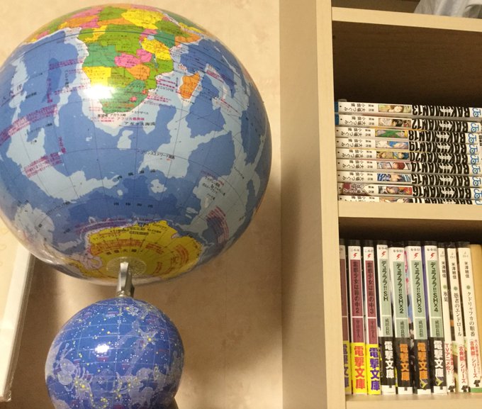 地球儀はちゃんとまん丸なはずなんだけど…にょ〜ん、って縦に引き伸ばされております🤣